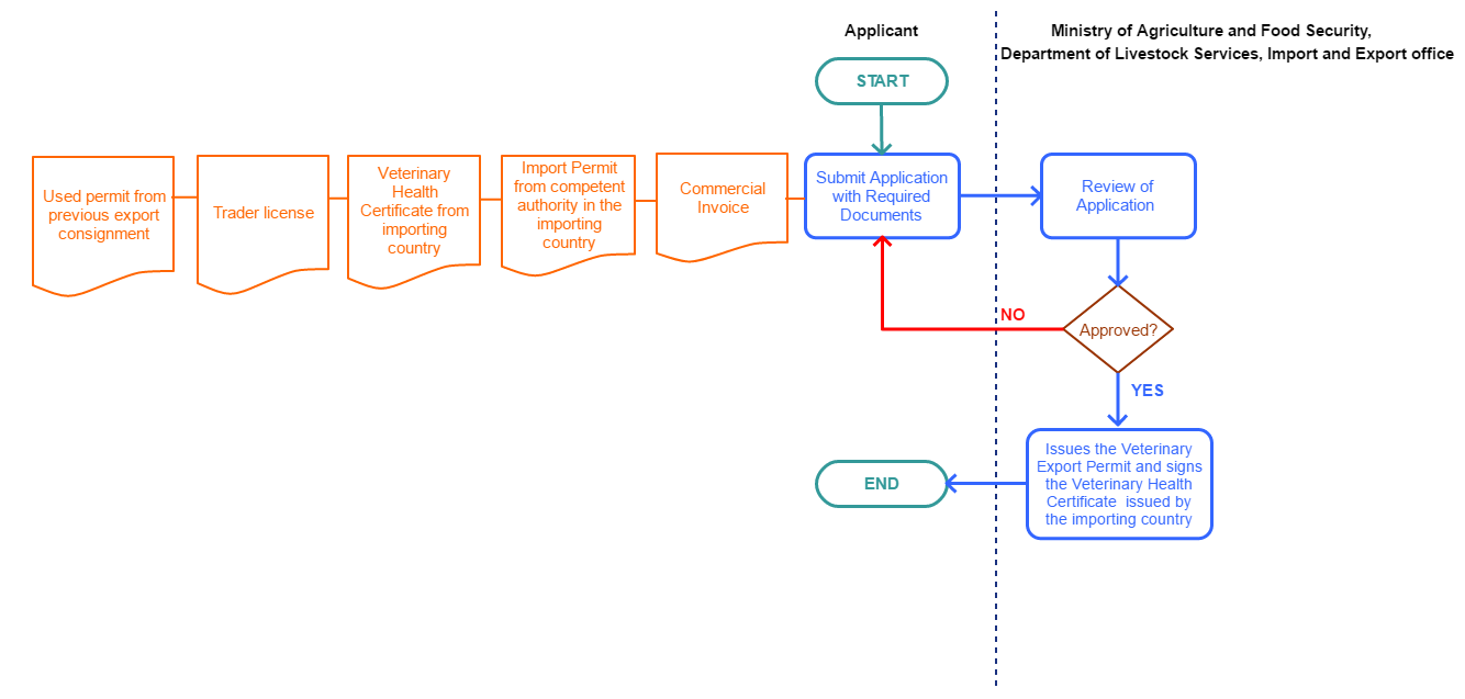 The applicant submits the application together with the supporting documents to the Department of Livestock Services, Import and Export office
