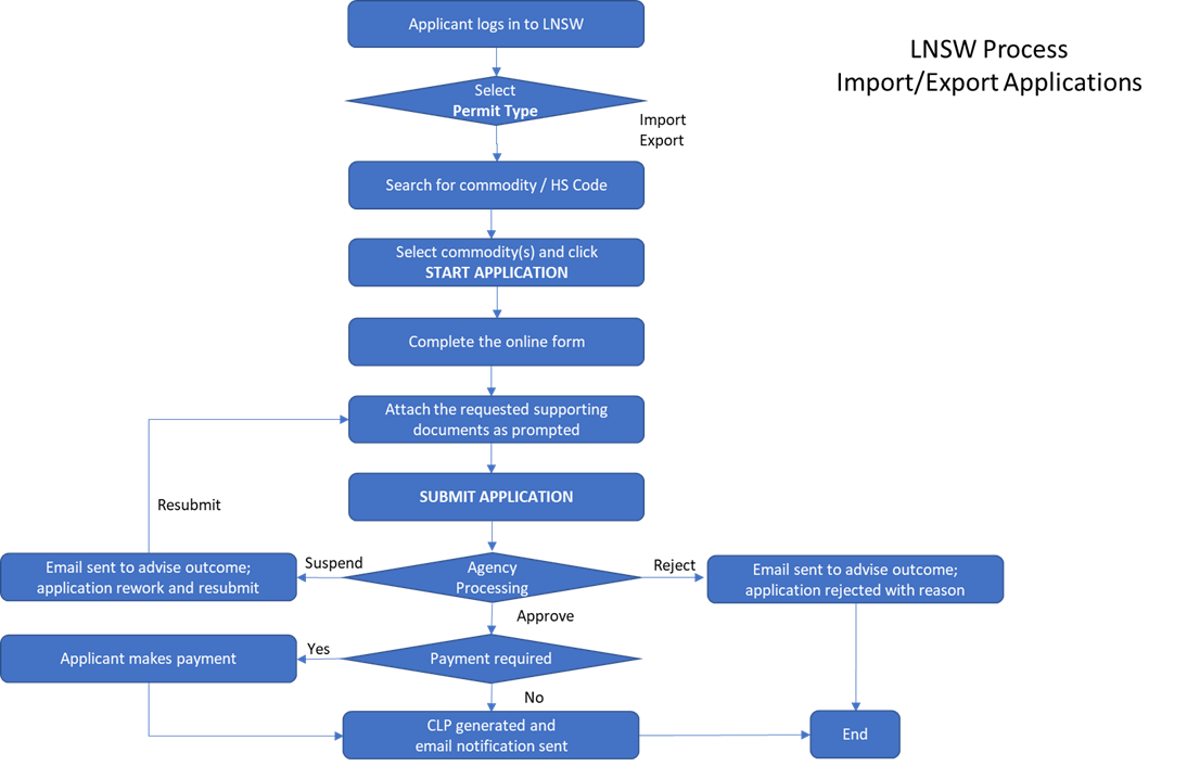 The diagram below describes the application process steps for the above-mentioned permit on LNSW.