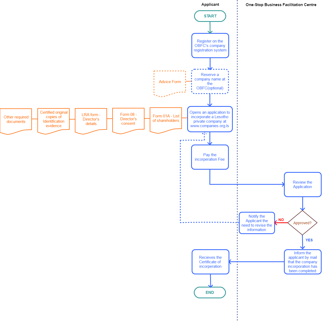 3. Name reservation is optional. It is done online at www.companies.org.ls. The payment can be done online by credit card or by a cash or debit card deposit at OBFC.