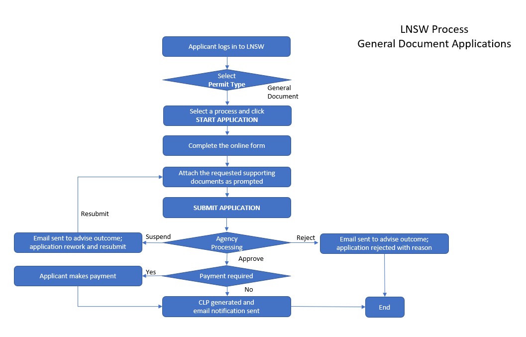 The diagram below describes the application process steps for the above-mentioned permit on LNSW.