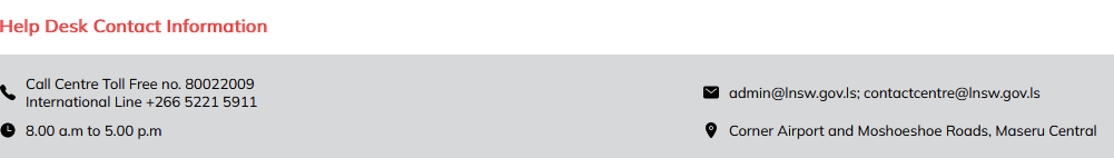 The registration process for LNSW is fully electronic and is made by navigating to the Lesotho National Single Window (LNSW), selecting the type of registration required, this could be as an individual importer/exporter, as a company, as a Customs broker or as an NGO/Diplomatic mission, and thereafter following the steps on the screen presented to complete the required details of registration.